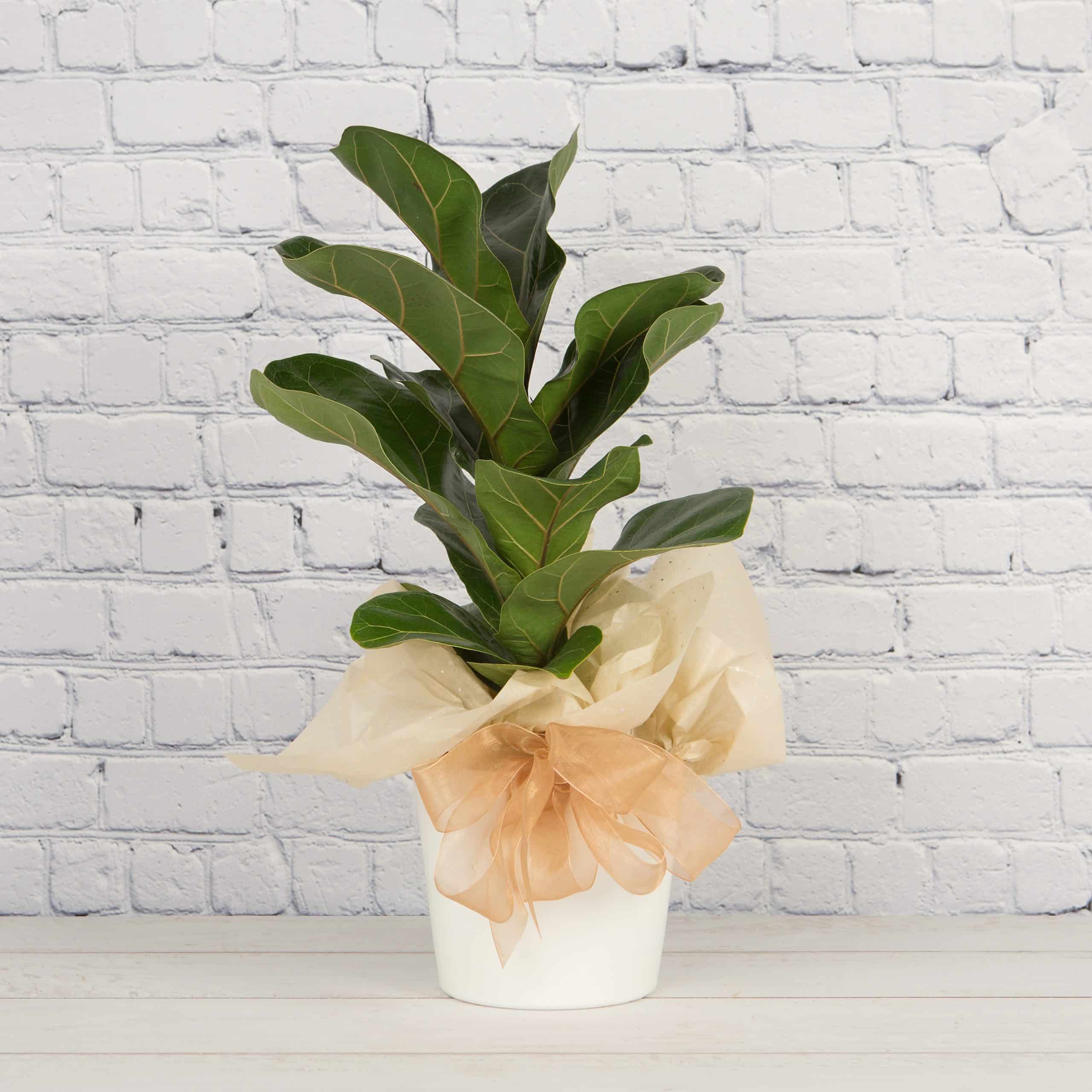 Surprise them with a luscious Ficus Bambino house plant, showcased in a beautiful ceramic pot. Presented with tissue, ribbon and gift bag. Pot measures 17CM.