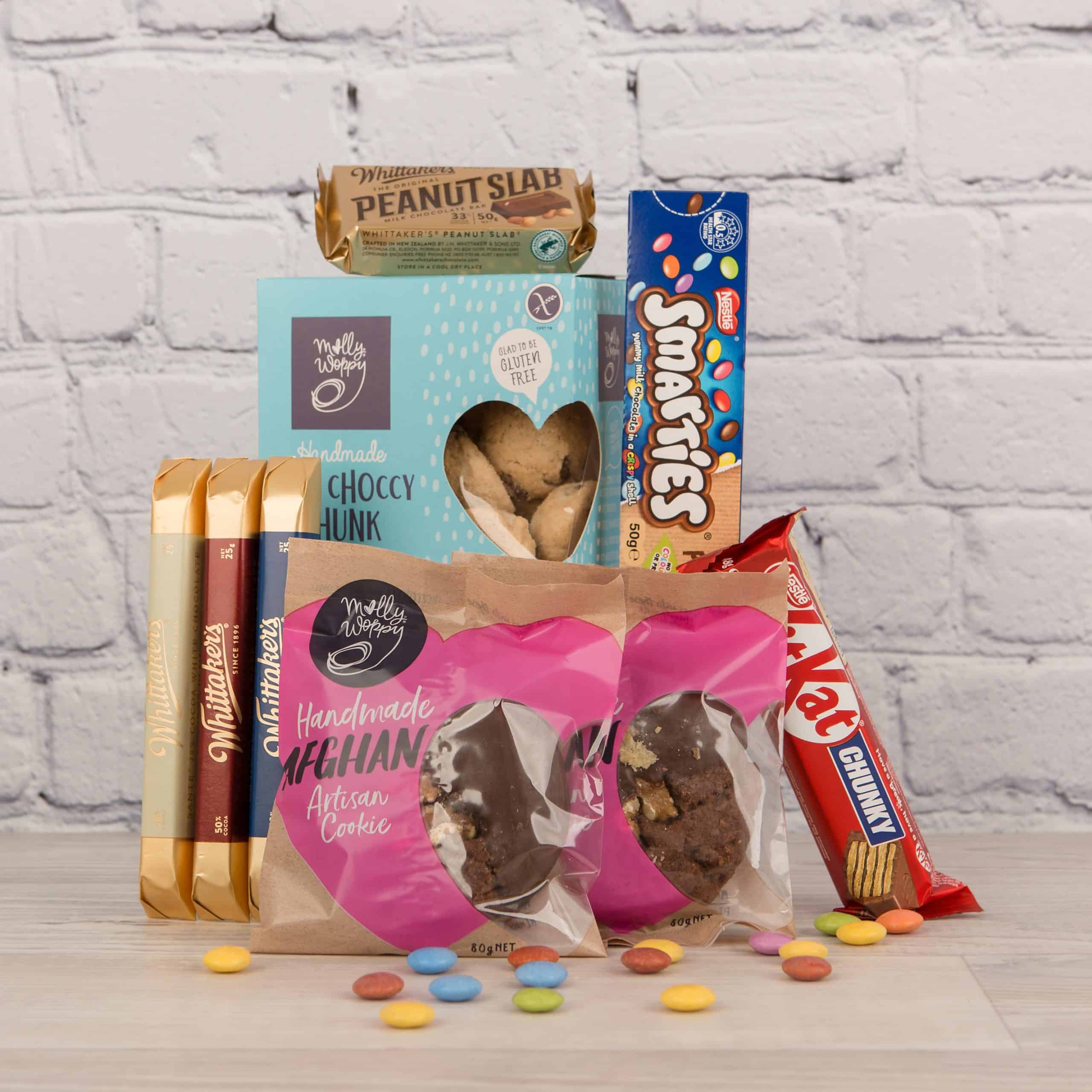 One of our great favourites! They can take time out for a treat with this fun selection of chocolate and cookies. Packaged in our gift box.